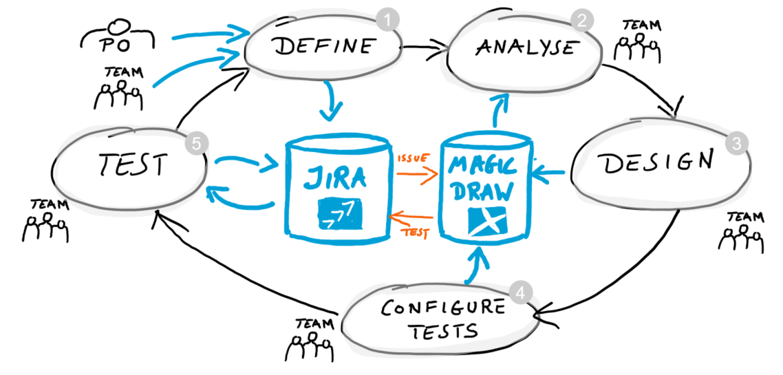 Udo hat modellgetriebene Testfallgenerierung vorgestellt, die diesen Abgleich noch wesentlich weiterentwickelt. Nach einer kurzen Motivation für modellgetriebene Testfallgenerierung präsentierte er eine kleine Rundreise , die viele von uns aus der täglichen Arbeit kennen. Udo startete mit einem Epic, welches der Product Owner in einem Tracking Tool wie Jira erstellt. Dieses Epic wird ins Systemmodell in MagicDraw gezogen. Dort analysiert der Analyst den Impact auf bereits bestehende Use Cases. Nach Bedarf halten Designer und Tester Abläufe und Testkonfigurationen nach. Mit VelociRator, dem modellgetriebenen Testgenerator, werden daraus Testfälle produziert, nach Jira synchronisiert und mit dem initialen Epic verlinkt. Die Rundreise endete dann mit einer für den Product Owner transparenten Test Coverage am Epic. Mit einem Ausblick wurde dann noch gezeigt , wie man generierte Testfälle und deren Automatisierung zusammenbringt und schließlich endete der Abend mit dem Fazit, wie uns der Testgenerator aus der COVID-19 bedingten Budgetfalle gerettet hat.